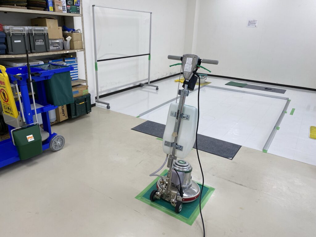 実技試験では、実際にポリッシャーを使用してのスプレーバフ法やワックスがけ、トイレ日常清掃などの実技が試されます。