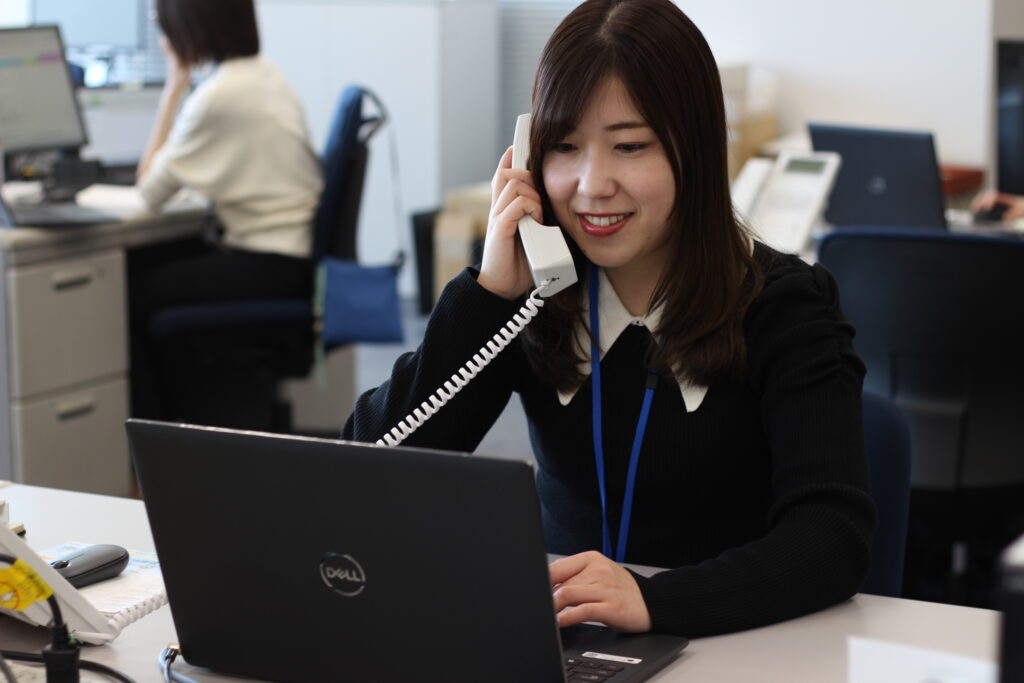 今まで営業職をしていたため、総務部で働くのは当社が初めてでした。実際に総務のお仕事をしてみて、電話応対や各部署をサポートすることが多く、他部署とのやりとりが頻繁にあるため、コミュニケーション能力が培われるところがこの仕事を選んで良かったことです。